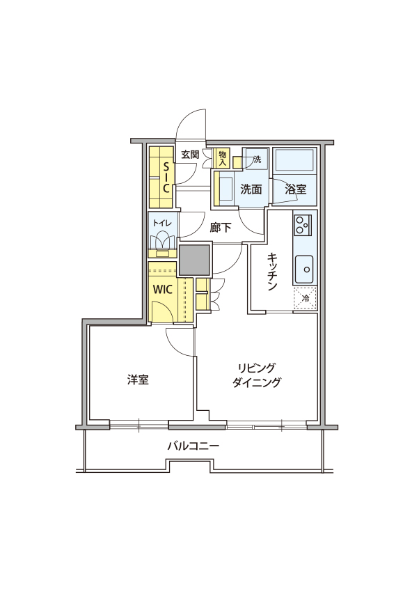 キッチン横の廊下が居室として生きていないため、居室に取り入れます。