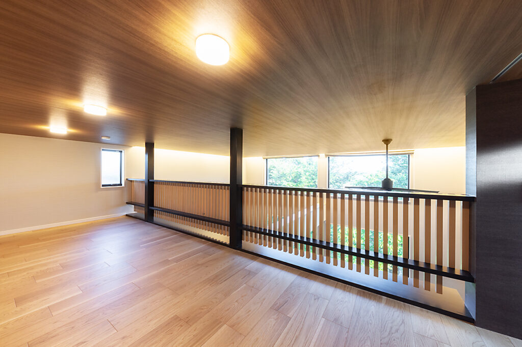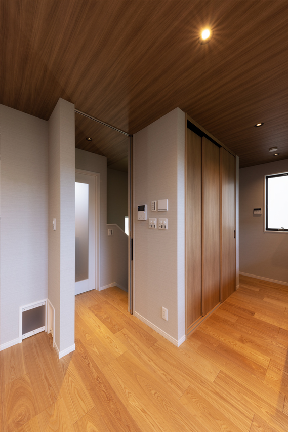納戸(FL1400)との一体感を考えて斜め天井ではなくフラット。