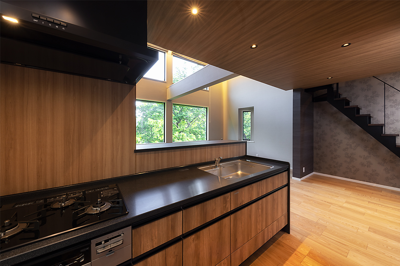 キッチンからもダイニングからもリビングからも景色を楽しむ。